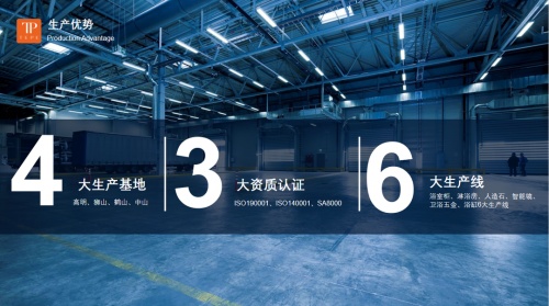 TEPE缇派卫浴拥有高明、狮山、鹤山、中山四大智造基地,总面积高达25万㎡,凭借着高效产能持续输出高质量产品,全面推进新产品、新技术、新材料的应用拓展,质量口碑深获消费者和市场的双认可。