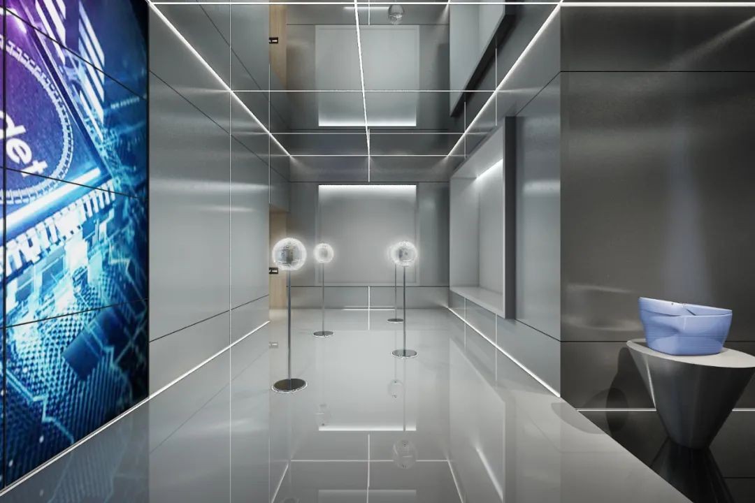 爱智贞新展厅形象设计融入“元宇宙”概念,贯穿其中的是“智能”+“科技”的视觉冲击感。六大空间场景、六大智能系统、全屋智能系统结合5G+ALOT,实现家居、出行、工作的空间互联。