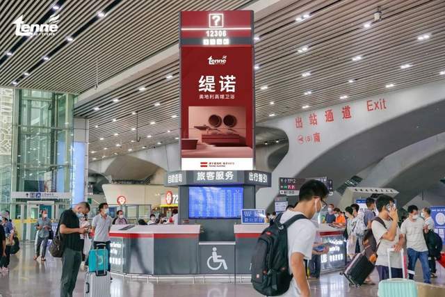 本次,奥地利TENNE缇诺卫浴选择与闪耀世界的中国名片——中国高铁携手合作,以大型LED广告投放的形式遍布高铁站候车厅、出入口等高流量曝光区域,借助其高传播、高覆盖、高渗透性的特点,进一步向精致化、高端品味的消费人群传递“艺术与生活完美融合”的欧洲星级卫浴主张,提高奥地利TENNE缇诺卫浴在中国市场的地位。