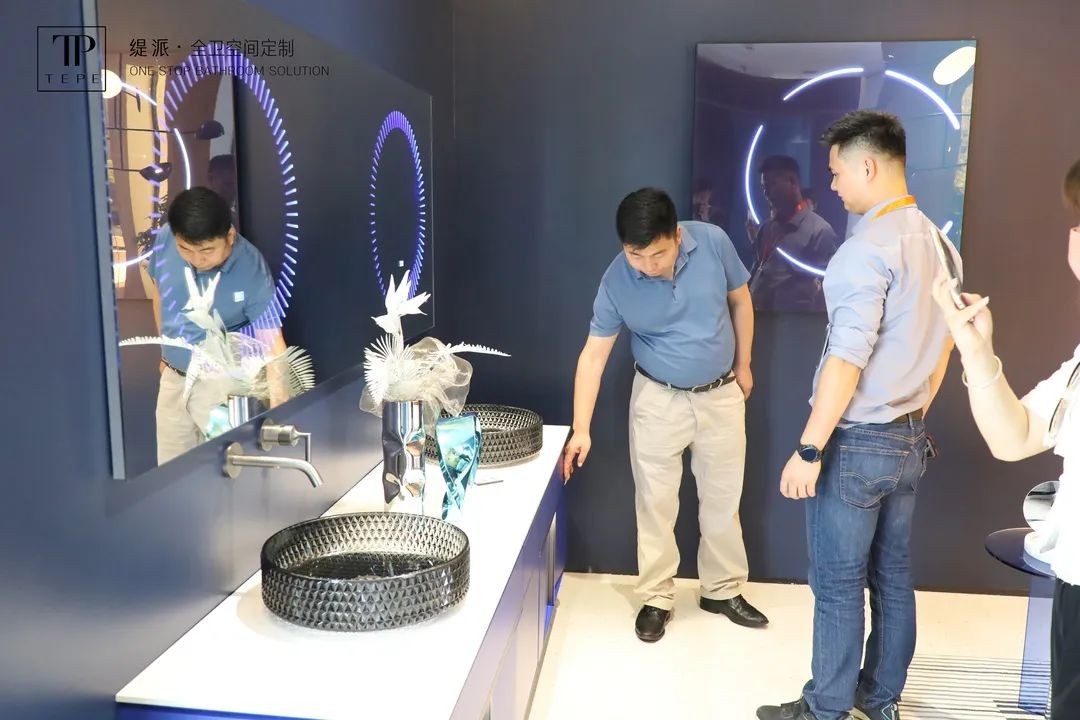 同时,就TEPE缇派卫浴淋浴房新品及浴室柜新品的推出,经销商团队更对主要生产淋浴房的中山生产基地及主要生产浴室柜、智能镜、人造石及五金加工的高明生产基地进行了参观,近距离感受TEPE缇派卫浴严格的品质标准及先进的生产工艺。