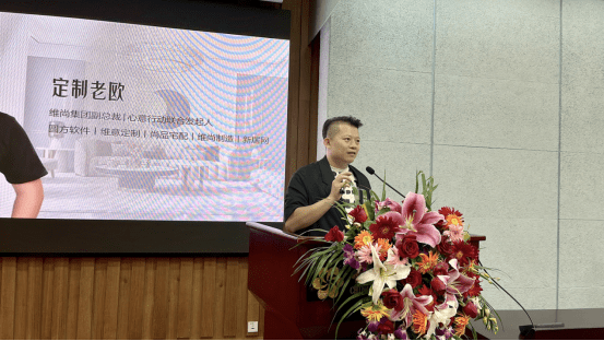 会议上,维尚家居集团副总裁欧阳熙上台作题为《从模糊到透明》的家居行业发展趋势解读。现代筑美家居集团副总裁田成全也上台作家居行业发展趋势解读,他表示整家定制、门墙柜一体化、整装大家居会成为家居行业发展趋势。