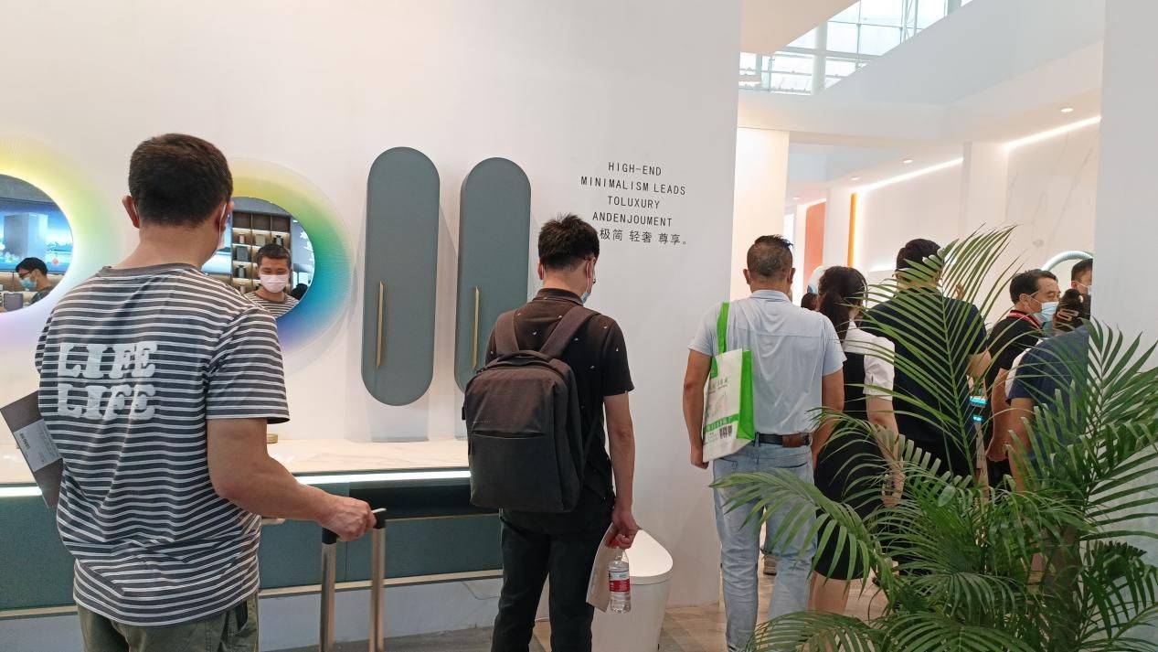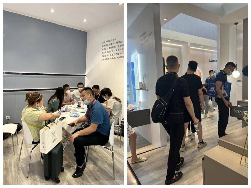 本次展会正值是浪登洁具全国火热招商中,凭借着自身的硬核势力,全方位帮扶政策和招商政策,浪登洁具深受经销商们的青睐与信任,展厅洽谈区人气火爆。