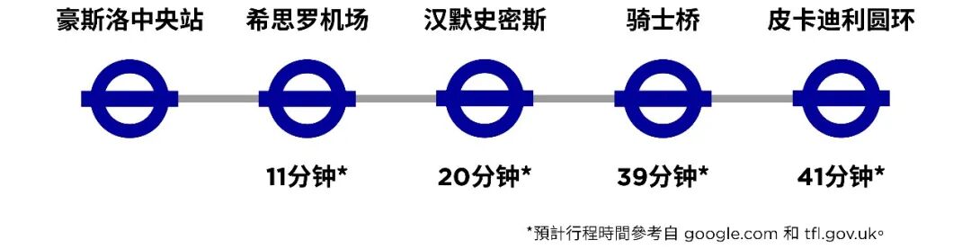 对伦敦的市民来说,地铁是他们最快捷最高效的交通工具,因此毗邻地铁线的住宅项目总是广受欢迎。High Street Quarter的位置就在地铁皮卡迪利线(Piccadilly Line)上豪斯洛中央站(Hounslow Central)和豪斯洛东站(Hounslow East)中间,走大概5分钟就可以抵达,从豪斯洛中央站出发至希思罗机场也只需要10到11分钟左右,非常方便。